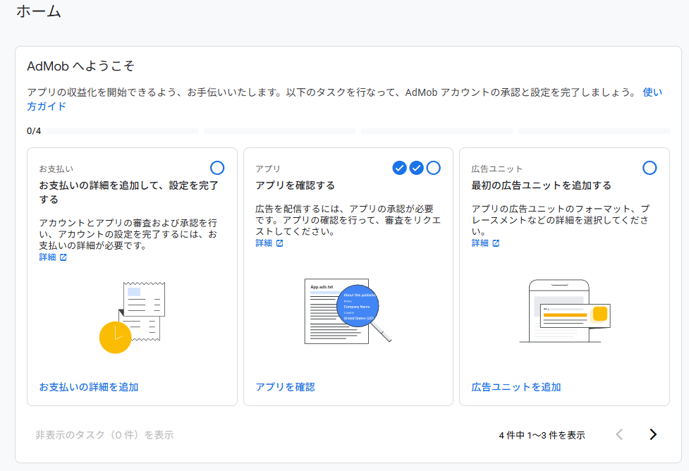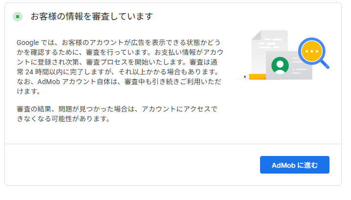 次の画面へ移動すると、自動的にAdMobの審査の一部の手続きが完了します。