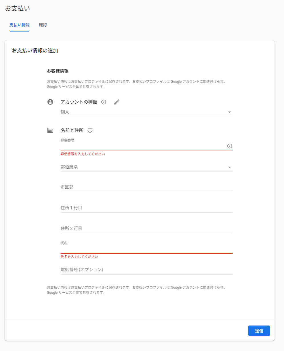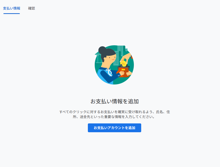 「お支払いアカウントを追加」ボタンを押下してお支払い情報を設定します。