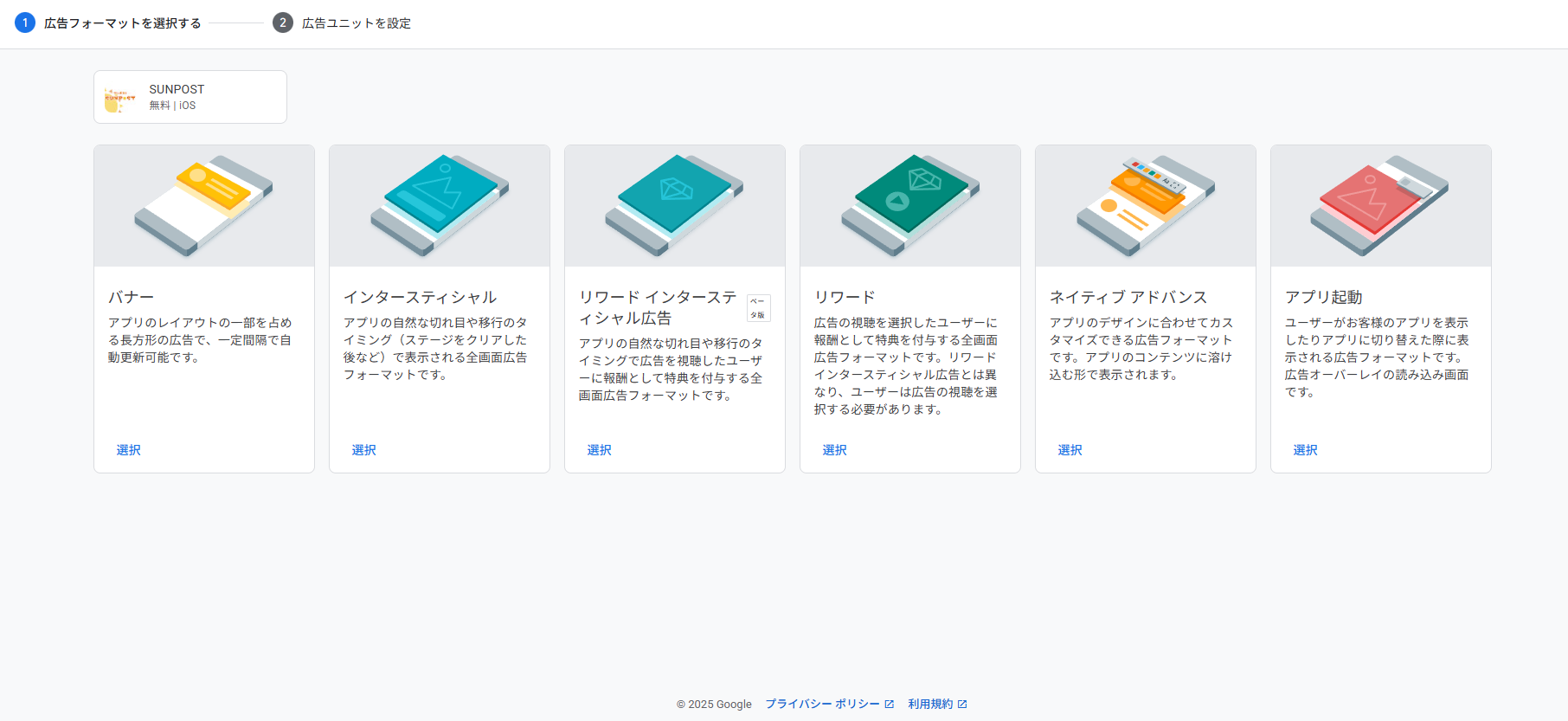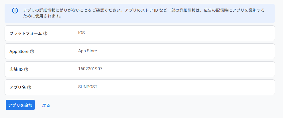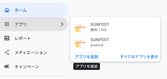 広告を表示するアプリ(この場合はSUNPOSTになります)の設定を行います。