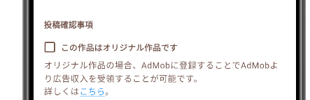 作品投稿の画面の下部にこのような「この作品はオリジナル作品です」というチェックボックスがあります。