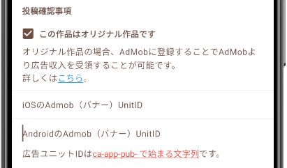 作品投稿時にAdMobのユニットIDを紐づける